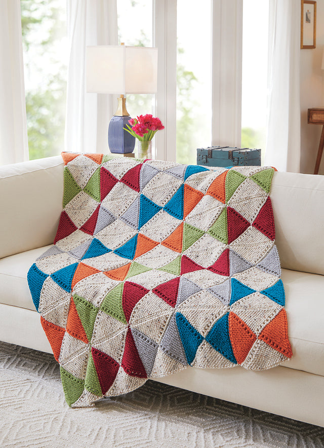 Ajoutez une touche de couleur et de style à n'importe quelle pièce avec la couverture Bold Bowties. Dotée de triangles audacieux et colorés qui créent des nœuds papillon amusants, cette couverture apportera joie et énergie à votre espace. Restez au chaud et faites une déclaration avec cette pièce unique et accrocheuse. Le kit comprend des fils Red Heart Super Saver et des instructions. Nécessite des aiguilles de 6,0 mm . Taille finie : 40 x 56". Tricot intermédiaire.