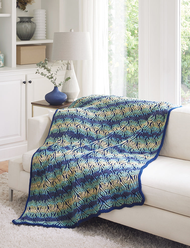 Cet Afghan de vignes grimpantes est une œuvre d’art ! Avec son design époustouflant, ses couleurs vives complémentaires et sa méthode Brioche qui crée une couverture réversible, elle deviendra à coup sûr une pièce maîtresse accrocheuse pour tout espace de vie. Sa texture complexe créera une atmosphère chaleureuse et engagera vos sens visuels et tactiles. Laissez ce magnifique afghan apporter chaleur et style à votre maison ! Conçu par Elaine Carey. Le kit comprend des fils Red Heart Super Saver et des instructions. Nécessite une aiguille circulaire de 32" (80 cm) de taille 4,50 mm et des DPN de 8" (20 cm) de taille 5,0 mm . Taille finie : 41 x 58,5". Tricot intermédiaire.