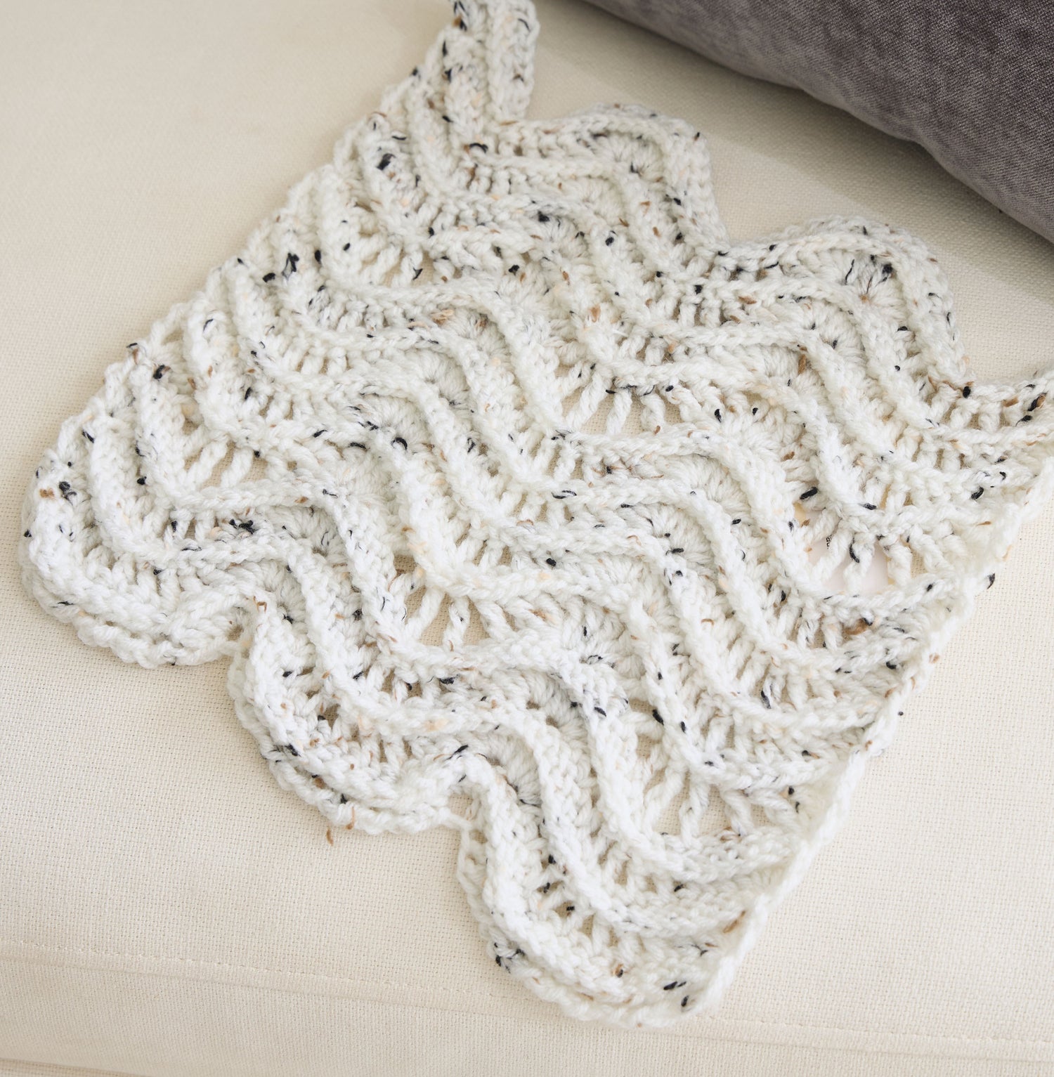 Create a touch of elegance in any room with our Lace Cascade Throw! The post stitches give a unique 3D effect, while the lacy waves add a feminine touch. Wrap yourself in luxury and add a touch of ambiance to your home. Kit includes Mary Maxim Aran Irish Twist or Tweed yarn and instructions. Requires crochet hook size 7.0 mm. Finished size: 43 x 57". Intermediate Crochet.