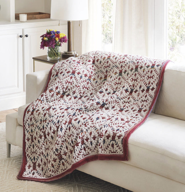 Offrez-vous le luxe et le raffinement de notre couverture Radiance. Idéal pour se blottir, ce jeté éthéré apporte une touche d'élégance à n'importe quel espace grâce à son motif élaboré. Laissez-le devenir une pièce maîtresse captivante et animer votre environnement. Conçu par One Skein of Love. Le kit comprend des fils et des instructions à valeur maximale Premier Colorfusion DK et Mary Maxim . Nécessite des crochets de tailles 4,0 et 4,50 mm . Taille finie : 42 x 53". Crochet intermédiaire.