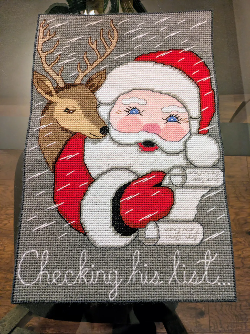 Accueillez les vacances avec cette charmante tenture murale Checking His List ! Le joyeux lutin et ses rennes apporteront à coup sûr une ambiance festive à n'importe quelle pièce. Réalisez ce projet facile à réaliser avec la toile en plastique et le fil brillant inclus : parfait pour égayer votre maison ou votre bureau ! Faites-en une saison spéciale avec ce kit de suspension murale. Le kit comprend une toile en plastique à 7 mailles, des fils acryliques et des instructions pour réaliser comme indiqué. Accessoires non inclus. Taille finie : 13,5 x 21".