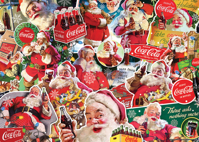 The Coca-Cola Santa is the jolly old elf we know today. In 1931, commissioned by the Coca-Cola company, illustrator Haddon Sundblom was inspired by the poem "A Visit from St. Nicholas," which became the modern day Santa with the jolly smile, rosy cheeks, a white beard, and a twinkle in his eye. This iconic jigsaw puzzle celebrates that legendary artwork and brings festive nostalgia into your home. Perfect for holiday gatherings, quiet winter evenings, or as a meaningful gift for collectors and Coca-Cola enthusiasts, this puzzle combines entertainment with timeless Christmas charm. Size: 21 x 15". 500 pieces.