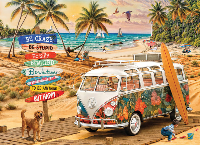 Évadez-vous vers des journées de plage insouciantes avec ce puzzle coloré représentant l'aventure ultime en combi VW. Imaginez-vous entouré de palmiers se balançant au gré du vent, de sable doré et d'une vue imprenable sur l'océan : tous les ingrédients d'un pur bonheur côtier. Ce puzzle allie la liberté de la route à la détente du bord de mer, ce qui en fait un incontournable pour les âmes vagabondes et les passionnés de véhicules vintage. Assemblez les pièces de votre havre de paix et transformez votre moment de puzzle en un voyage de joie et de nostalgie. Dimensions : 67,3 x 48,9 cm. 1000 pièces.
