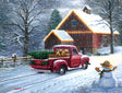 Relive the cozy charm of a snowy day with the Grandpa's Tree Jigsaw Puzzle. Featuring two adorable puppies riding home in a vintage pickup truck after a fun afternoon at the tree farm, this puzzle captures the warmth of holiday traditions. Perfect for unwinding and sharing festive moments, it invites you to piece together a heartwarming story of friendship, family, and the joy of Christmas preparations. Size 24 x 18". 500 pieces.