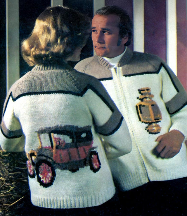 Men's or Ladies' Antique Auto Cardigan Pattern
