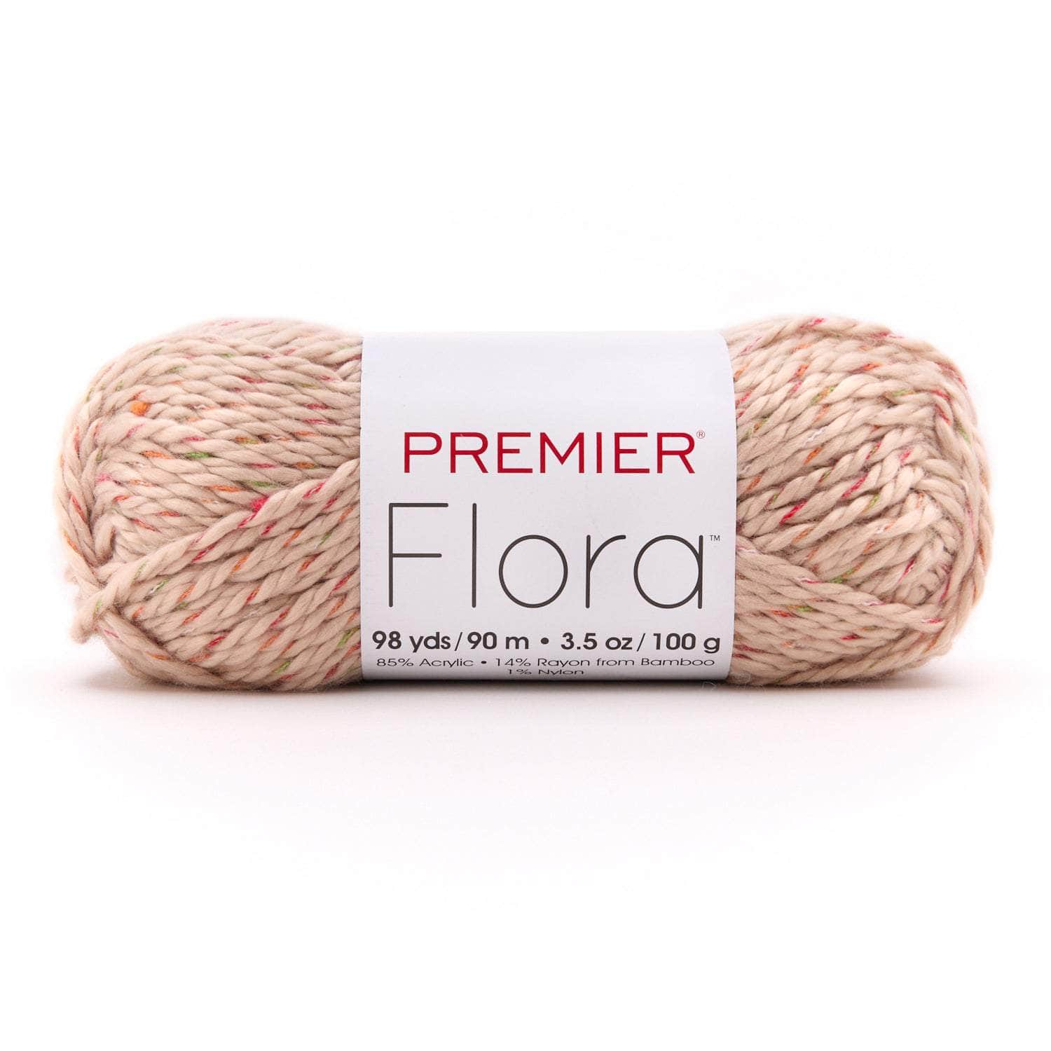 Refresh your Spring style with new Flora, a bulky weight yarn with a bamboo fibre blend that's perfect for transitional weather. Soft and silky, this yarn glides over your tools with ease, ensuring an enjoyable stitching experience. 85% acrylic, 14% rayon derive from bamboo, 1% nylon. Machine wash, lay flat to dry. 98 yds (90 m) per 3.5 oz (100 gm) ball. Suggested gauge: 12 sts & 16 rows to 4" (10 cm) on size 6.50 mm needles. Yarn Weight: 5-Bulky.