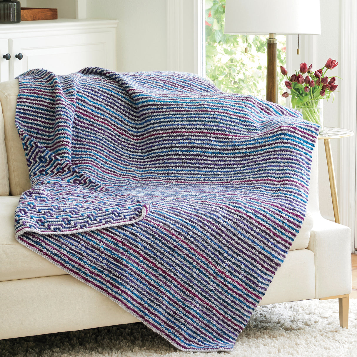 Un joli plaid réversible à crocheter. Le kit comprend des fils et des instructions Mary Maxim Prism et Mellowspun DK . Nécessite un crochet de 4,0 mm . Taille finie : 48 x 60". Crochet intermédiaire.