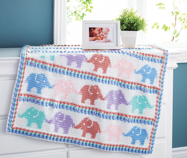 Restez au chaud et confortable dans cette couverture pour bébé Elephant Parade ! Fabriqué avec un motif bébé éléphant, de délicieuses couleurs douces et un fil ultra doux, il gardera votre tout-petit confortablement au chaud et avec style. Facile d'entretien, il est parfait pour un usage quotidien ! Le kit comprend des fils Bernat Softee Baby et des instructions. Nécessite un crochet de 4,0 mm . Taille finie : 38 x 38". Crochet intermédiaire.