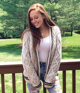 Obtenez un look intemporel cette saison avec le Cardigan Folklore ! Confectionné avec de magnifiques torsades et fini avec des bandes de couleurs contrastées, ce cardigan sera un excellent ajout à votre tenue décontractée. Parfait avec un jean, vous pouvez soit ajouter vos propres boutons, soit conserver le style ouvert sur le devant. Soyez belle et restez au chaud ! Le kit comprend du fil Lion Brand Wool Ease et des instructions. Nécessite une aiguille circulaire de 80 cm (32") de taille 5,50 mm et des boutons. Tricot intermédiaire.