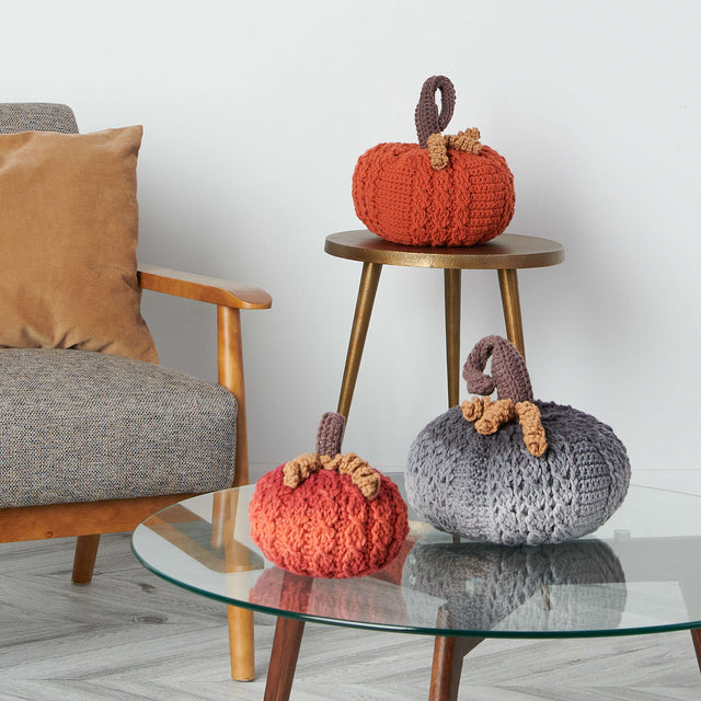 Mettez la table avec un projet de déco gourmand ! Conçu par Mikey de The Crochet Crowd, avec Red Heart Super Saver et Red Heart Super Saver Ombre . Ce modèle comprend trois variations en deux tailles. Nécessite 2 pelotes et un crochet de taille H-8 (5,0 mm) et de la fibre de polyester . Crochet intermédiaire.
