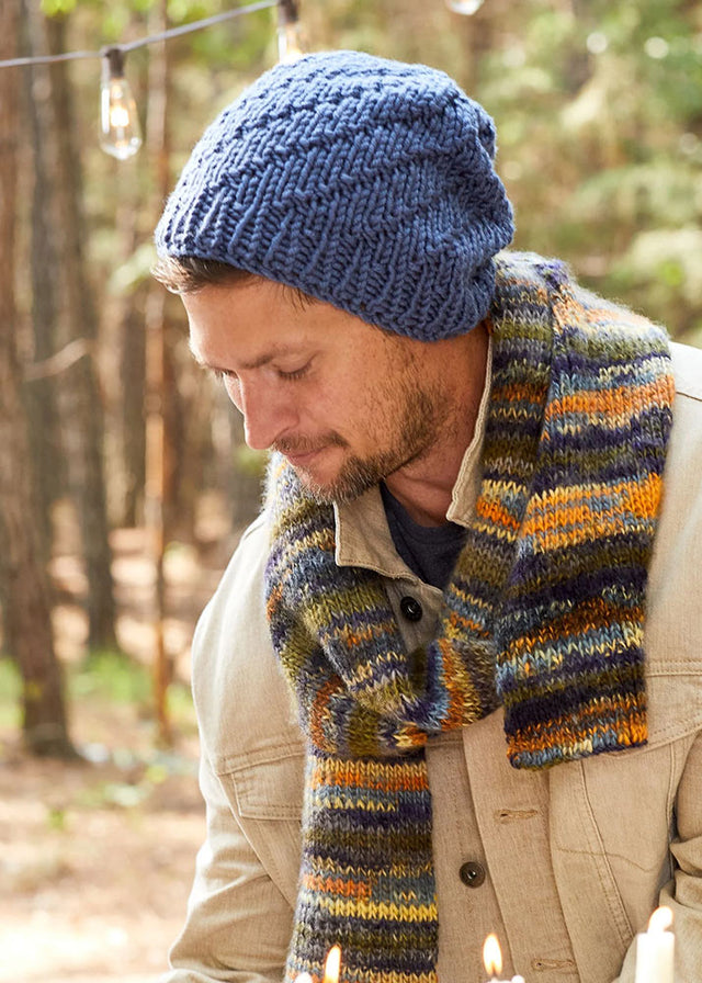 Nécessite 2 écheveaux dans votre choix de couleur. Montré en denim.Modèle de chapeau côtelé en spirale gratuit est en rupture de stock et sera expédié dès qu’il sera de retour en stock.