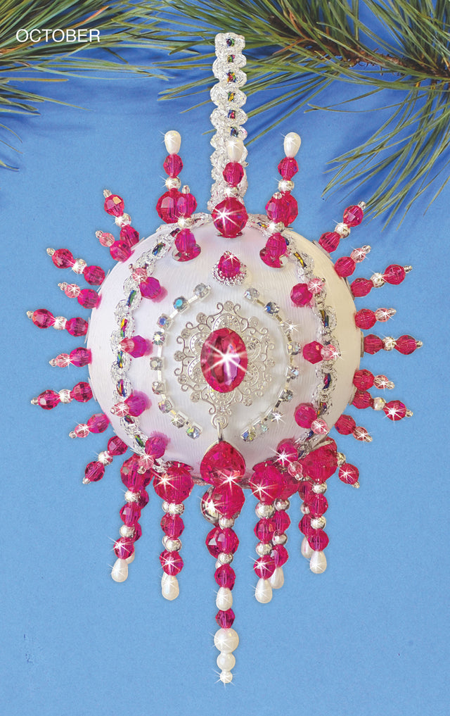 Welcome Fuchsia Fantasy - a beautiful, bejeweled ornament kit perfect for your Christmas tree or as a thoughtful gift. Adorn a satin ball with glittery ribbons, sparkling beads and dazzling gems for an eye-catching, one-of-a-kind decoration. Let the sparkle of Fuchsia Fantasy brighten up any holiday display! Kit includes all components to make as shown. 3" round.