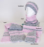 Get ready to snuggle up in style with this delightful crochet pattern for a matching set that's anything but ordinary. Designed for the 2019 Mary Maxim Crochet Club using Mary Maxim Baby Plush yarn (109 yds/3.5 oz), a #5 bulky-weight, the ever-popular chenille-style yarn. Discover a wonderful selection of bulky yarns perfect for this project. Just remember, yardages can vary. Materials List: Grey and Pink 3 balls each, and size L/11 (8 mm) crochet hook. Finished Scarf: 7 x 65" (17.5 x 165 cm). Headband: 3.5 x 18.5" (9 x 47 cm). Cowl: 7 x 22" (17.5 x 56 cm). Wrist Warmers: 8.25" (21 cm) circumference.