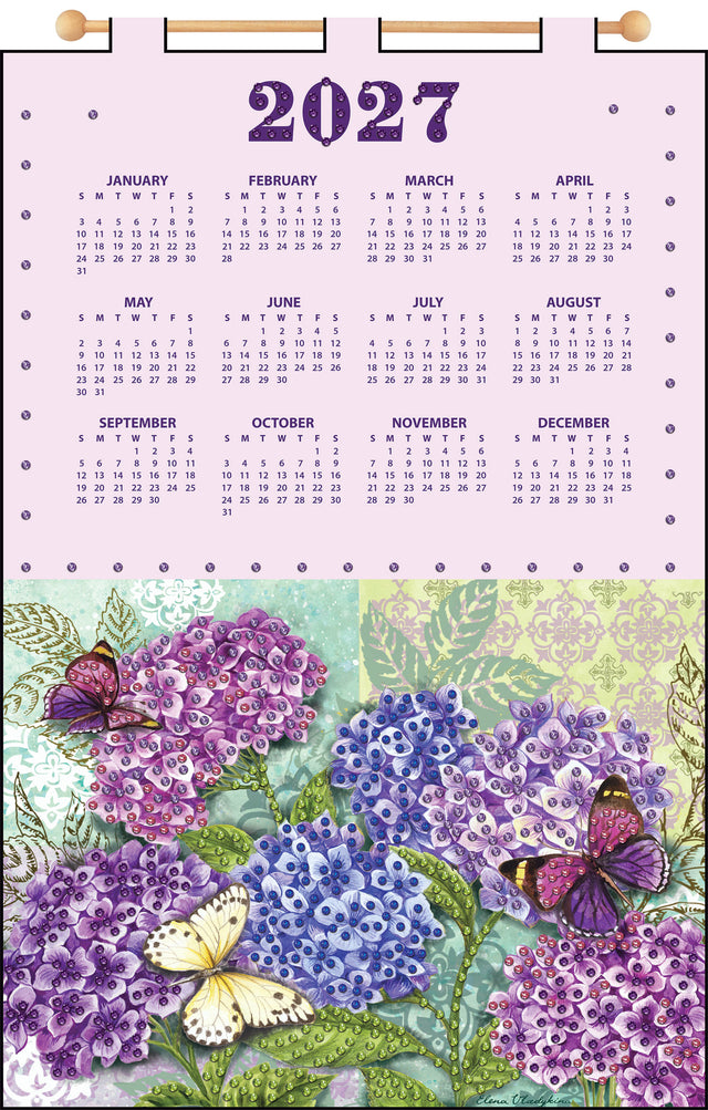 Calendrier Hortensia 2027 en feutrine et paillettes