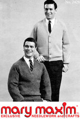 Tricotez l’un ou l’autre style de pull en utilisant notre motif vintage Mary Maxim. Comporte un pull ou un cardigan à col en V avec des manches raglan, en simple point jersey. Tailles 38-40-42-44. Créé à l'origine avec Mary Maxim Mellowspun ou Mellowmist, soit offert à l'époque 210 mètres par écheveau de 2 oz. Nous disposons aujourd'hui d'un vaste assortiment de fils et de couleurs de poids léger parmi lesquels choisir ; sachez simplement que la distance varie. Nécessite des aiguilles à tricoter de taille US 3 (3,25 mm), 6 (4 mm) et à double pointe de taille 3 (3,25 mm).