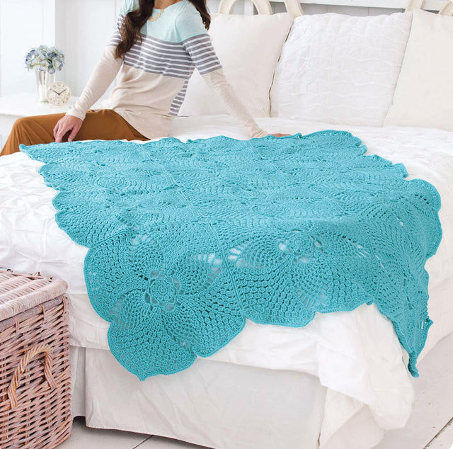 Indulge in the beauty of our Pineapple Squares Throw! This stunning piece features delicate lacy pineapple squares, adding a feminine touch to any room. Its intricate design is sure to make a pretty addition to your home decor. Experience the beauty for yourself and add a touch of elegance to your space. Kit includes Caron One Pound yarn and instructions. Requires crochet hook size 4.50 mm. Finished size: 48 x 64". Intermediate Crochet.