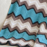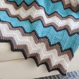 Love the classic ripple design but want to update your look? This modern twist & stitch on a classic is the perfect choice. The clean outdoor hues will go perfect in any room, keeping your warm and in the now. Kit includes worsted weight yarns and instructions. Requires crochet hook size 5.50 mm. Finished size: 45 x 58". Intermediate Crochet.