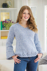 Un pull en tricot confortable avec une touche de dentelle ajoutera une touche intéressante à n'importe quelle tenue. Le kit comprend du fil Mary Maxim Starlette Ragg et des instructions. Nécessite des aiguilles de 5,0 mm. Tricot intermédiaire.