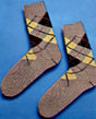 Knit these argyle socks with our vintage pattern. Knit socks with comfort and style in mind. Originally knit with Mary Maxim Twice Nice, a fingering weight that offered 120 yards per 1 oz skein at that time. Discover the perfect colours for this project from our amazing selection of super soft, fingering weight yarns we offer today! Just be aware of variations in yardage. Requires knitting needles sizes U.S. 1 (2.25 mm) and 2 (2.75 mm) and 8" double points size 2 (2.75 mm).