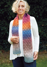 Add a touch of texture and vibrant color to your wardrobe with Attabi Scarf Kits. The classic scarf is woven with a simple, geometric tabby cloth design to create a unique and eye-catching look. Elevate your style with this must-have accessory! Kit includes Echoes Aran weight yarn and instructions. Requires needles size 5.0 mm. Finished size: 6 x 61". Easy Knit.