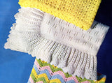 Knit this blanket with our vintage pattern for your little bundle of joy. An eyelet effect, formed by an easy "yarn over" stitch with a lacy ruffled edge. A dainty addition to baby's layette. Knit originally in white, with Mary Maxim Twinkle, a super-soft fingering weight yarn that offered 175 yards per 1 oz skein at the time. We have a lovely selection of fingering weight yarns in today's modern colors, and you're sure to find just the right one for your project! Also requires knitting needles size 6 (4 mm). Finished size 34" square.