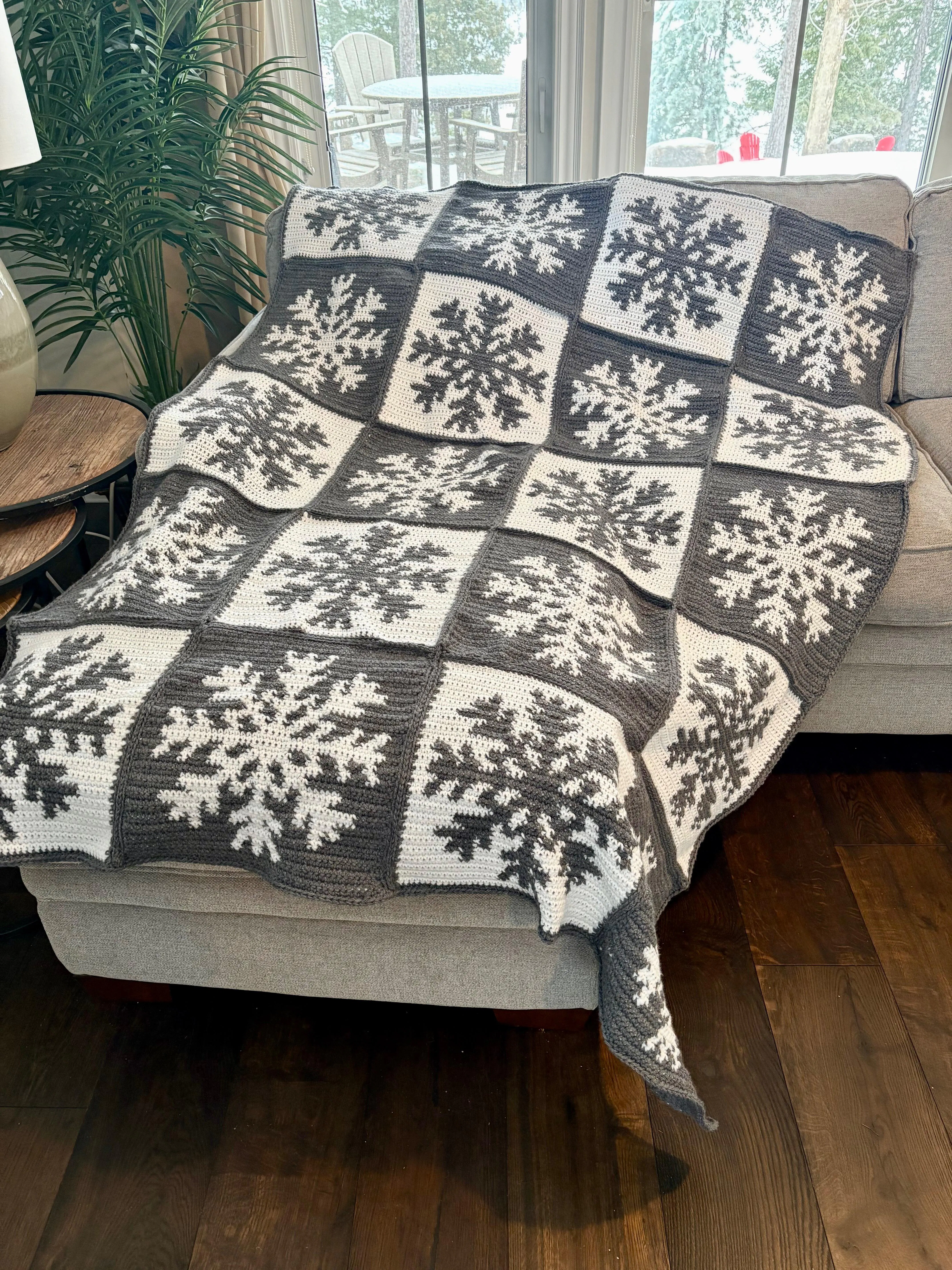 A blizzard of snowflakes worked in tapestry crochet to delight all ages. Kit includes Mary Maxim Starlette yarn and instructions. Requires crochet hook 5.5 mm. Finished size: 54 x 68". Intermediate Crochet.