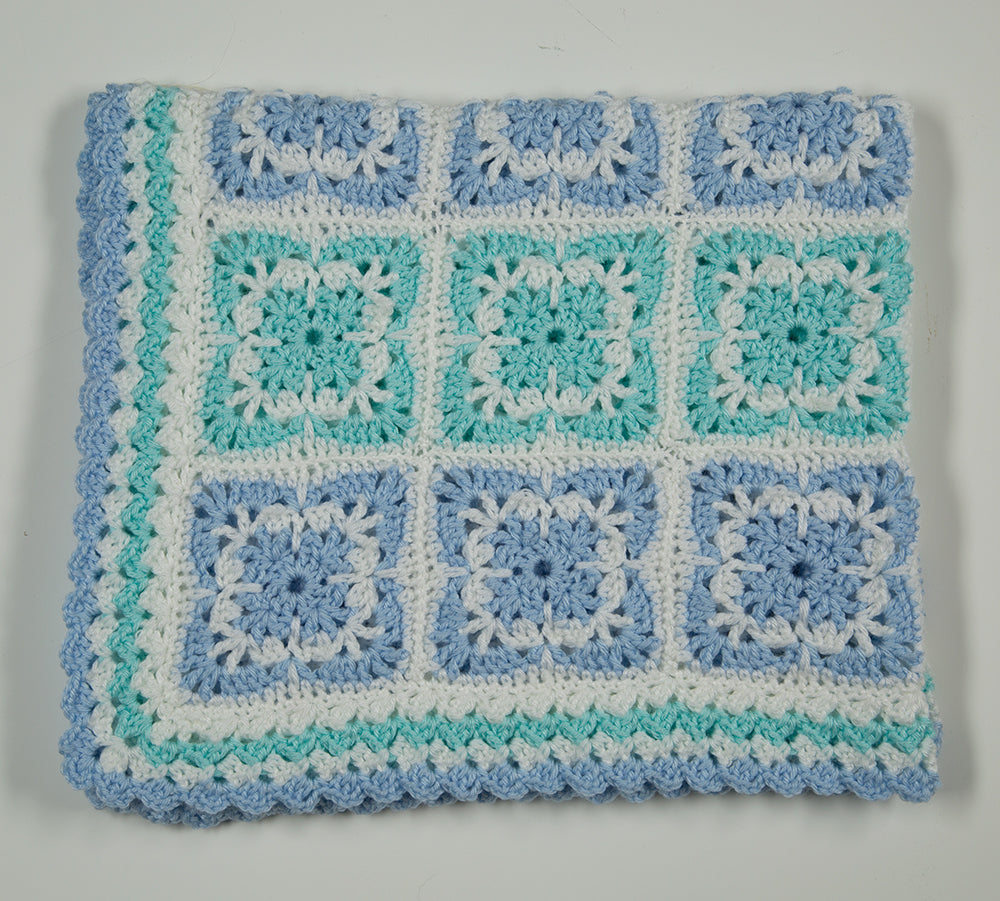 Stylish blocks and a striped border make a blanket any baby will love. Kit includes Mary Maxim Baby Value yarns and instructions. Requires crochet hook size 5.0 mm. Finished size: 27 x 33". Intermediate Crochet.