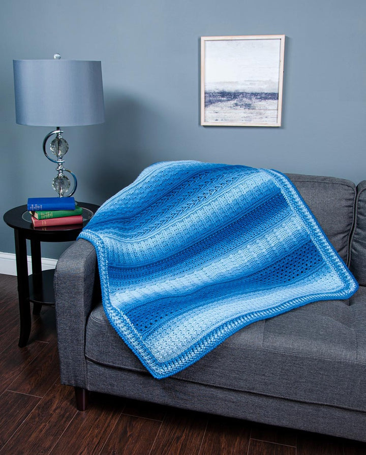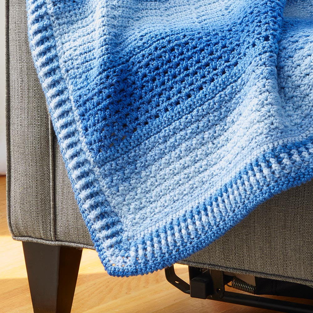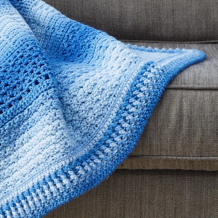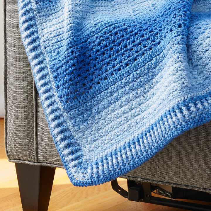 This little lapghan makes a big statement. Designed by Ruth Hunter. Kit includes Red Heart Super Saver Ombre yarn and instructions. Requires crochet hooks sizes 3.5, 4.0 & 4.5 mm. Finished size 35 x 42". Intermediate Crochet.