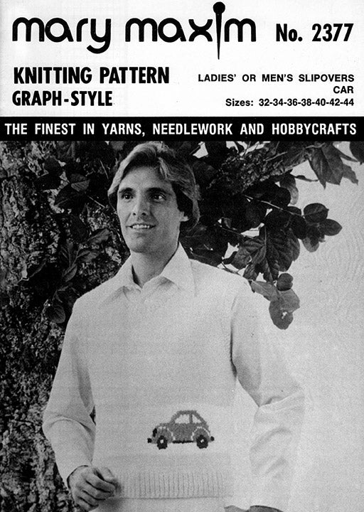Knit a unique sweater vest with our vintage pattern for ladies' or men. Created using Mary Maxim Mellowspun sportweight yarn, which offered 420 yds per 4 oz skein at the time. Browse our extensive selection of sportweight yarns, including Mary Maxim Mellowspun, and make this to suit your unique style. Keep in mind, yardage varies. Materials List: MC (8 oz), CC1 White (100 yds), CC2 Tangerine (20 yds), CC3 Black (5 yds), knitting needles size 3 3.25 mm) and 6 (4.25 mm). Fits sizes 32-34-36-38-40-42-44—Intermediate knit.
