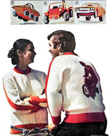Pick between four choices with our Recreational Vehicles cardigan pattern, designed in the 1960s, a Mary Maxim graph-style pattern! The stitch technique is fair isle and colored pattern knitting. Trail Bike, All-Terrain, Dune Buggy, and Stock Car graphs are included! This original design was created using Mary Maxim Titan yarn, which had 80 yards per skein at that time. We have a wonderful assortment of bulky weight yarns today, including Mary Maxim Titan, that would be perfect for this project! Keep in mind that yardage varies. Materials List: Sz 8-12 MC (6 skeins), CC1 Trim (3 skeins), CC2 Black (30 yds), CC3 Gold (35 Yds) CC4 Gray (30 yds), Tan C only (15 Yds), knitting needles size U.S. size 6 (4.25 mm) and 9 (5.50 mm). Also available in adult sizes, sold separately.