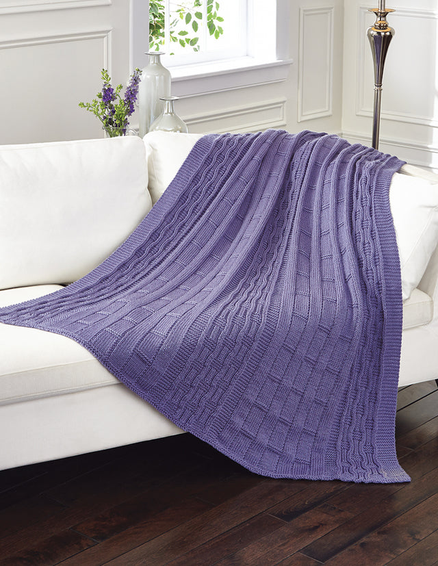 Graceful knit and purl combinations worked quickly in this attractive afghan pattern. Designed using Mary Maxim's Best Value worsted weight yarn that offered 342 yds per skein at the time. With the amazing selections of worsted weight yarns we offer in today's modern color trends, including Mary Maxim Best Value yarn, your options are endless! Keep in mind yardage varies. Materials List: Shown in Wisteria or choose any other Best Value color. Size 49 x 60". Requires 36" Circular Needle size U.S. 9 and Stitch Markers.