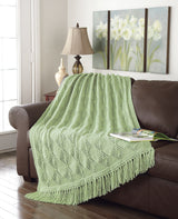 Transform your room with elegance and style with our Diamond Medallion Throw. Made with a lacy diamond design and generous fringed ends, this throw will add a touch of sophistication to any space. Perfect for those looking to elevate their decor and add a touch of luxury to their home. Designed Emily Armstrong. Kit includes Mary Maxim Starlette yarn and instructions. Requires 36" (90 cm) circular needle size 5.0 mm. Finished size: 45 x 55". Intermediate Knit.