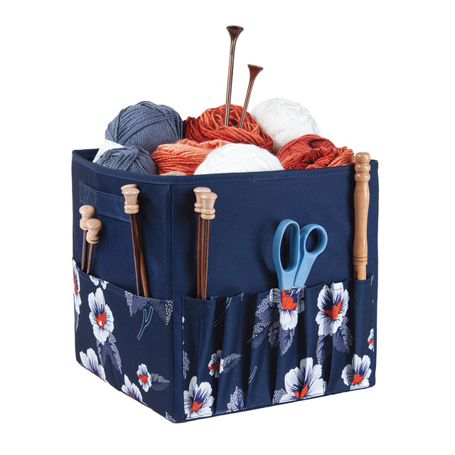 Exclusively from Mary Maxim, the Elegant Blooms Cube Organizer is crafted from 100% quilted cotton, combining durability with a refined look. Designed to keep your crafting space neat, it features 18 external slot pockets perfect for organizing hooks, needles, and other accessories within easy reach. Two sturdy end handles make it simple to carry, while the durable sides fold down effortlessly for compact storage when not in use. This stylish and practical organizer not only protects your latest project but also enhances your crafting experience by keeping everything you need neatly arranged and accessible. Only at Mary Maxim. Size 11 x 11 x 11".