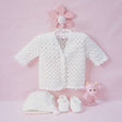 Get ready for that baby shower with this sweet set with matching cardigan, bonnet, and booties, crocheted in Bernat Softee Baby yarn. Requires 1 ball and crochet hooks size C-2 (3.0 mm) & E-4 (3.5 mm). Sizes 6 & 12 months. Easy Crochet.
