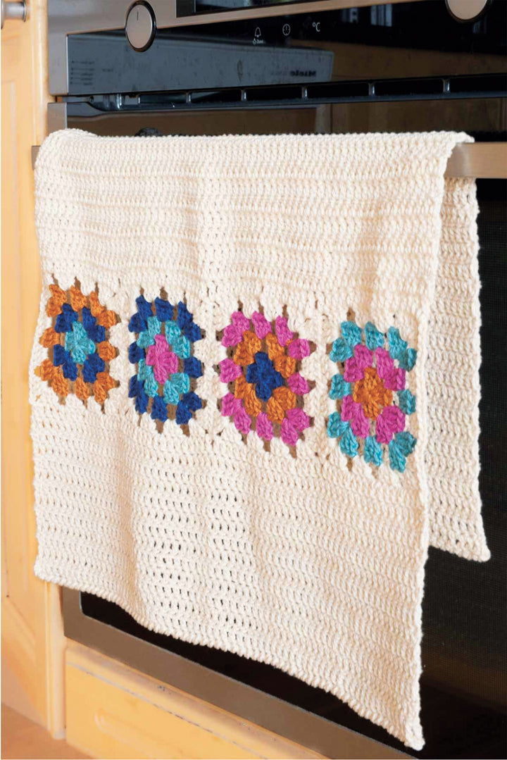 Our Granny Square Dish Cloth & Towel is a timeless classic made with all natural cotton yarn. Stylish crochet Granny Squares give your kitchen an elegant touch, while the absorbent yarn ensures a quality clean. Treat yourself to this classic design, and enjoy a beautiful and efficient kitchen. Kit includes Lion Brand 24/7 Cotton yarn and instructions to make 1 towel & 1 dishcloth. Requires crochet hook size 5.0 mm. Finished sizes: Towel-18 x 24", Dish Cloth-10 x 10". Easy Crochet.