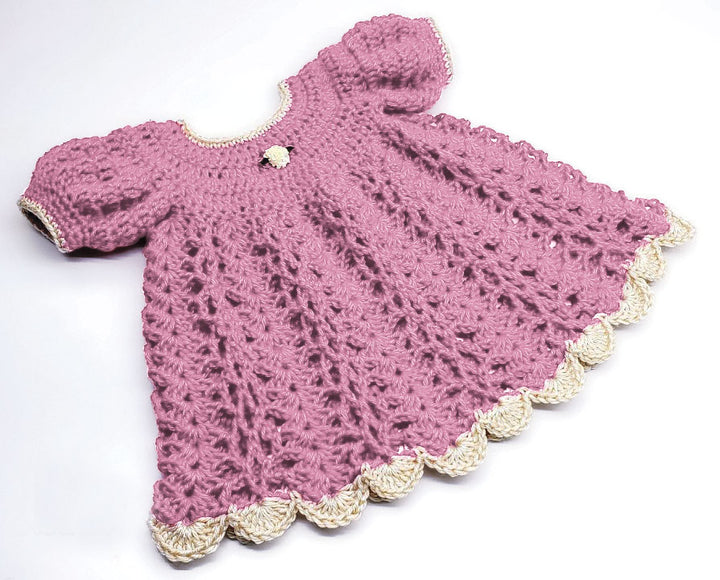Treat your little princess to this Heartland Beauty Baby Dress, featuring lovely cap sleeves and a delicate lacy design. Perfect for those special occasions, your little girl will be sure to look and feel like royalty. Sparkles and beauty awaits! Designed by Bag-O-Day Crochet. Kit includes Mary Maxim Starlette yarns and instructions. Requires crochet hook size 5.0 mm. Sizes 0-6 months. Intermediate Crochet.