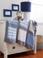 Knit Hopscotch Blanket - Blue/White/Grey is backordered and your entire order will ship as soon as it is back in stock.