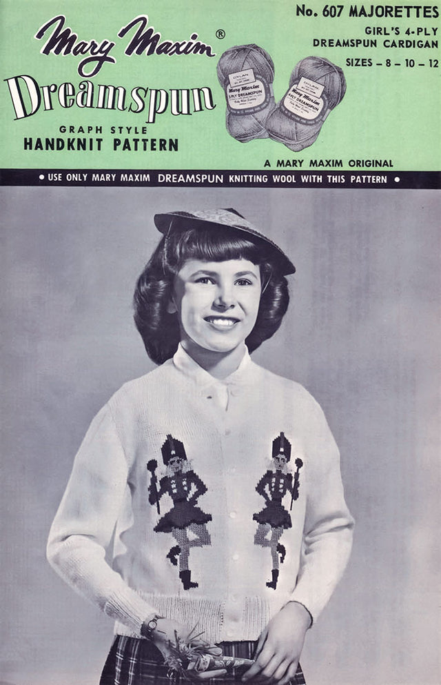 Why settle for a basic cardigan when you can knit them something fun like this! This pattern lets you knit an exhilarating Majorette baton-twirling cardigan for your child! They'll feel like a star while marching in it! Designed using Mary Maxim Dreamspun yarn, a 4-ply fingering weight yarn (#2 Light) which provided 75 yds per 1 oz skein at the time. You'll find the same #2 weight yarn with our Mary Maxim Baby's Best. Materials List: All sizes: Main color (9 balls), CC1 Dress, CC2 Legs and Face, CC3 Hat and Boots, CC4 Hair (1 ball each color), and knitting needles size U.S. 2 (2.75 mm), and 3 (3.25 mm). Pattern PDL608 Rodeo cardigan pattern available separately. Fits sizes 8-10-12—Intermediate knit.