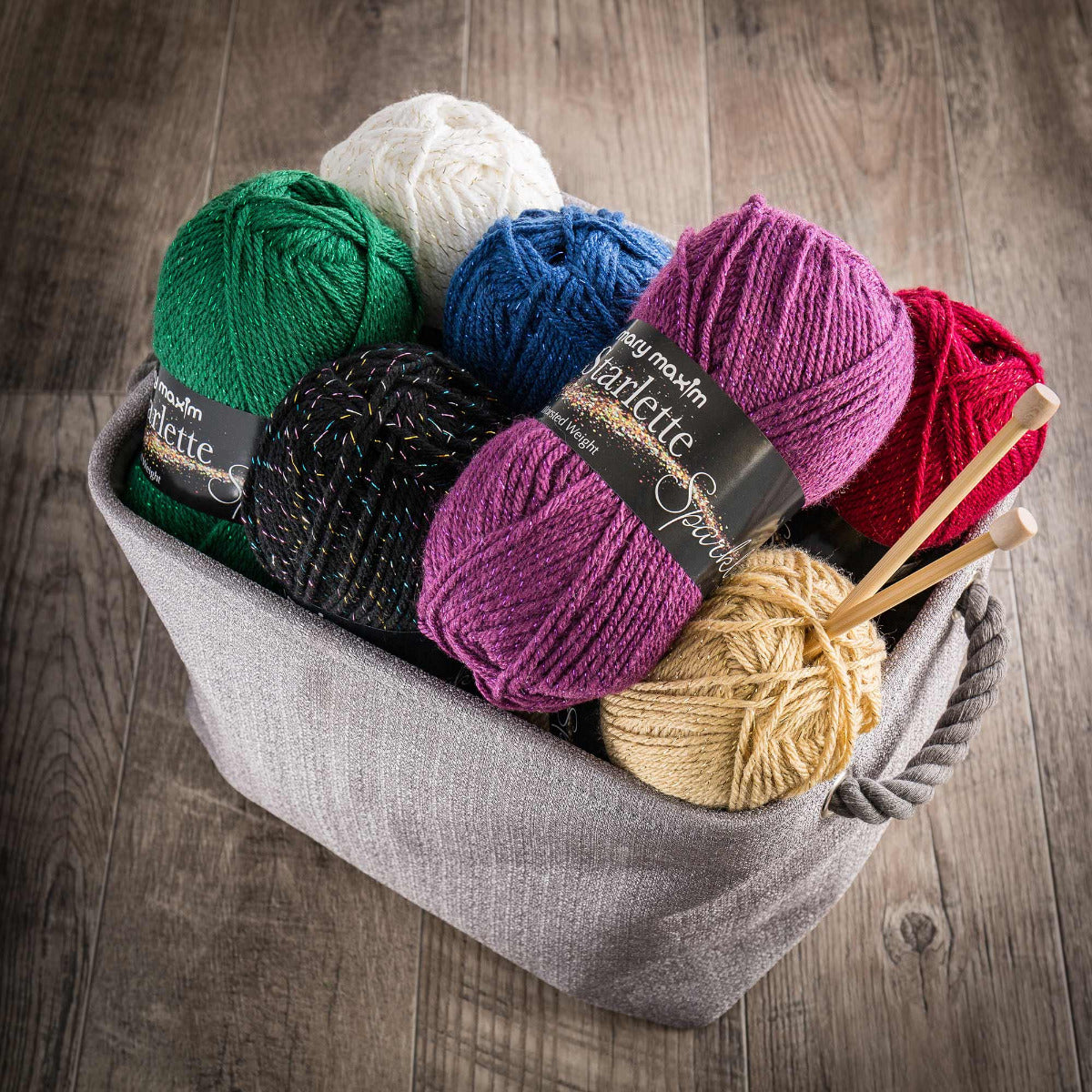 Add some eye-catching sparkle to your holiday with this soft premium acrylic yarn. These rich colours will add a subtle glitz to any knit or crochet project. 98% acrylic, 2% polyester. Machine wash & dry. 196 yds (179 m) per 3.5 oz (100 gm) ball. Suggested gauge: 18 sts & 24 rows to 4" (10 cm) on size 5.0 mm needles. Yarn weight: 4-Worsted.