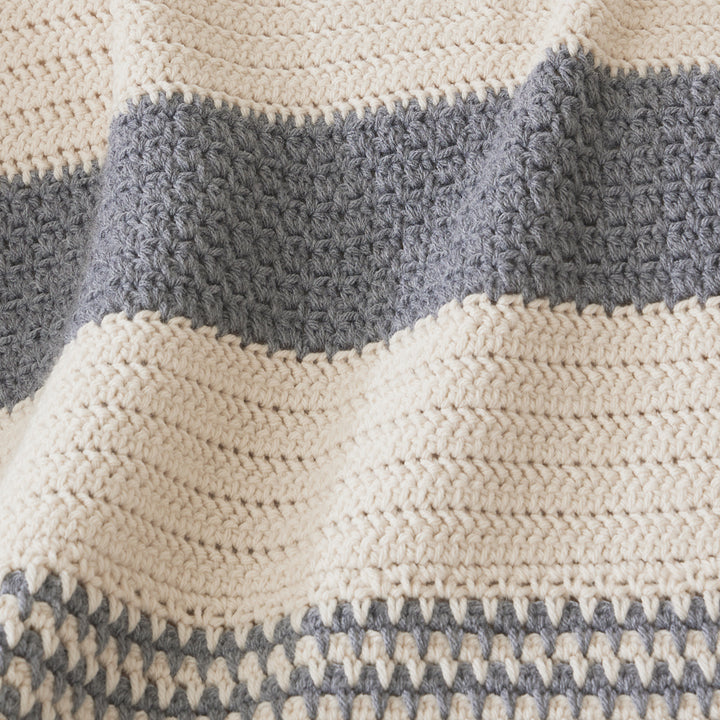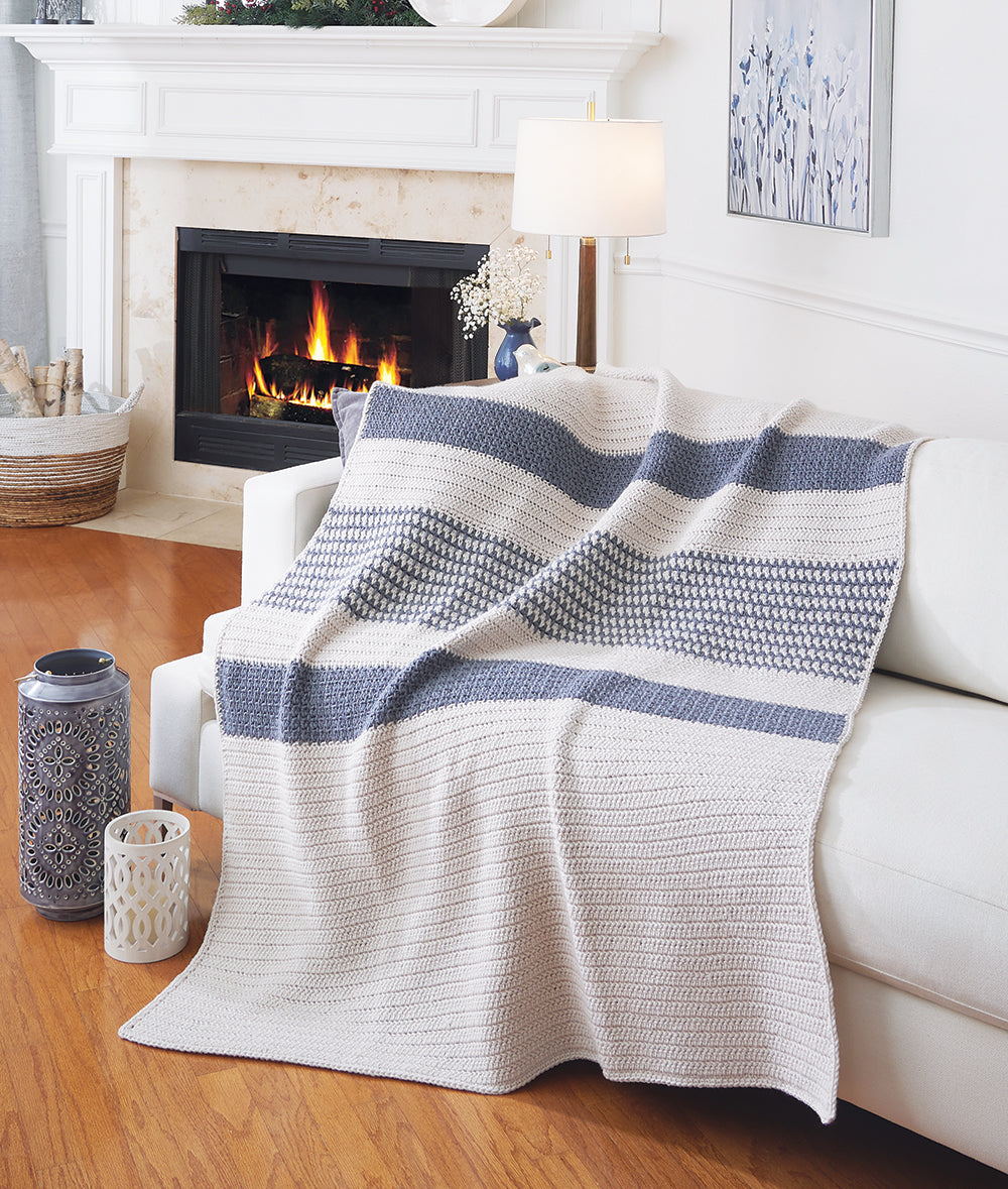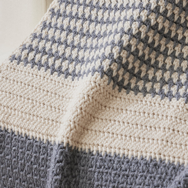 Create an inviting atmosphere with this Modern Crochet Throw! Look good and keep cozy with its sleek, modern design - perfect for any minimalist style. Soft textures make it a comfortable addition to any home. Transform your space today! Kit includes Mary Maxim Starlette yarns and instructions. Requires crochet hook size 5.50 mm. Finished size: 48 x 58". Intermediate Crochet.