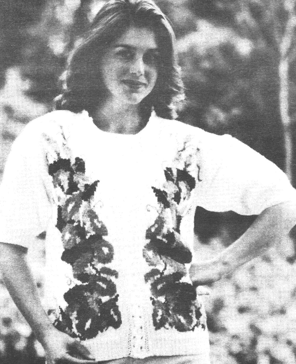 With this downloadable pattern, you can transform your wardrobe with a stunning Morning Glories Cardigan featuring a beautiful display of vibrant flowers, and intricate lace edging around the front and collar. This vintage-inspired pattern is sure to add a touch of elegance to any outfit.  Knit with ease using our graph-style instructions. A lovely display of morning glories adorns the back and optional long-sleeve instructions are included (add an additional skein of yarn for longer-length sleeves).  Designed using Mary Maxim Parisienne/Mellowspun DK sportweight yarn which offered 175 yds per 50 gm ball at the time. With the wonderful assortment of DK yarns we offer today, including Mary Maxim Mellowspun, you're certain to find the perfect shades for this project. Keep in mind yardage will vary. Materials List Short Sleeve: Sz 30-36 Mary Maxim Parisienne/Mellowspun White (5 balls). Sz 38-44 White (6 balls). All Sizes (short sleeve): Rose (1 ball), Lt Rose (85 yds), Dk Green (85 yds), Green, Yellow (15 yds ea), Knitting needles size U.S. 3 (3.25 mm), 6 (4 mm). Fits sizes 30-32, 34-36, 38-40, 42-44—Intermediate knit.