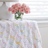 Discover beauty and comfort with our Peaceful Waves Blanket! Crafted with soft hues of gentle waves, this baby blanket is lightweight yet cozy. Made using soft knit material, this blanket will turn your little one's room into a dreamland oasis! Kit includes Mary Maxim Baby Value yarns and instructions. Requires 32" (80 cm) circular needles sizes 3.5 & 4.0 mm. Finished size: 34 x 36". Intermediate Knit.
