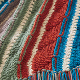 Experience the beauty of colour with this Peaks and Valleys Crochet Blanket! With lovely bands of jewel-tones, deep fringed ends, and a leaf-style pattern that works its way up the bands, this blanket will bring a luxurious and calming feeling to your home. Bring tranquility into your life and enjoy the warmth of this fantastic blanket! Designed by Paula Howard, our 2nd place winner! Kit includes Mary Maxim Maximum Value and Starlette yarns and instructions. Requires crochet hook size 5.50 mm. Finished size: 45.5 x 61". Intermediate Crochet.