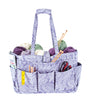 Show off your style this season with our exclusive, designer inspired, 100% cotton quilted Yarn Stash Bag! Features Velcro strap closure with 6 outside pockets. Size 21 x 10 x 6". Contents shown not included.