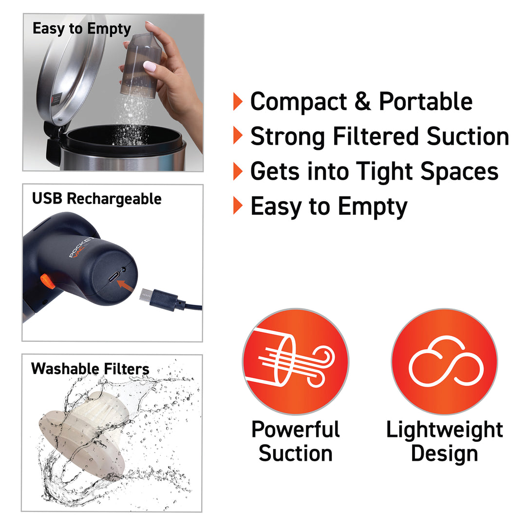 Clean up quickly & easily with the charge & go Pocket Vac!