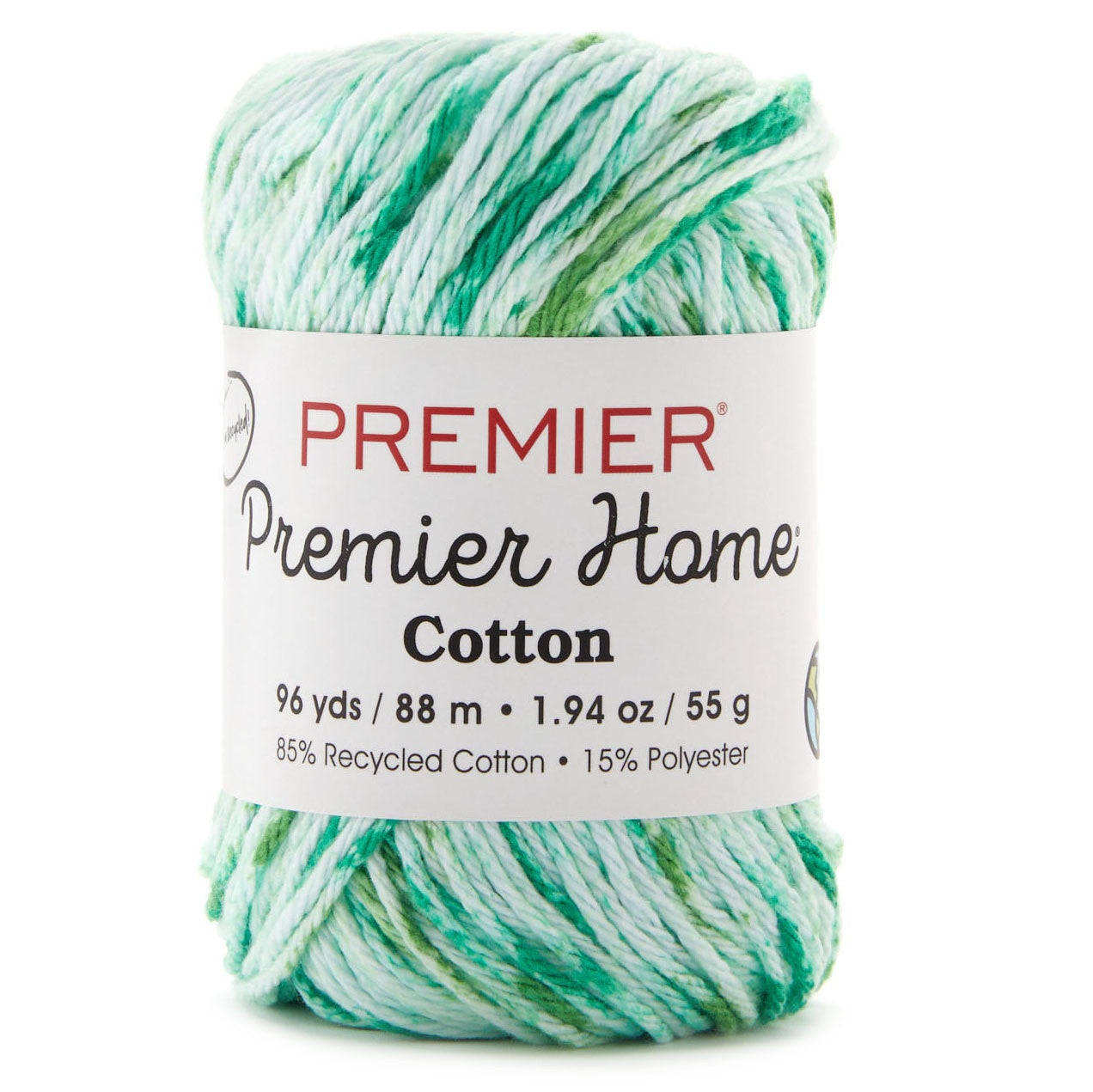 Soft, 4-ply, worsted weight Premier yarn is great for creating dishcloths & towel toppers. A combination of 85% cotton, 15% polyester make this yarn easy-care machine wash & dry. Suggested gauge: 18 sts & 24 rows to 4" (10 cm) on size 5.0 mm needles. Yarn weight: 4-Worsted.