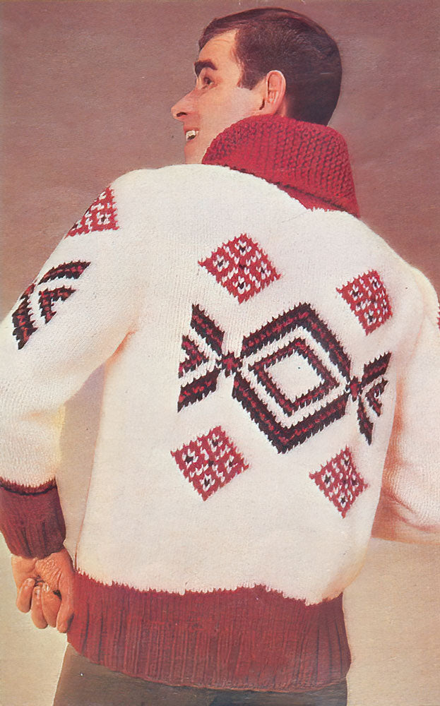 Knit this cardigan with our vintage graph-style pattern. The Pueblo Indian cardigan pattern offers raglan or, set-in sleeves and shawl collar. Originally, created with Mary Maxim Northland yarn, which had 80 yards per skein at that time. We now offer a great selection of bulky yarns to suit your style, including Mary Maxim Titan. Be aware yardage may be different. Materials List: Sz 38 MC (28 oz), Sz 40 MC (32 oz). Sz 42-44 MC (32 oz). Sz 38-40 Ribbing and Collar (20 oz) Design (4 oz). Sz 42-44 Ribbing and Collar (24 oz), Design (4 oz), and U.S. size 7 (4.5 mm) and 10 (6 mm) needles. Fits sizes 38-40-42-44—Intermediate knit.