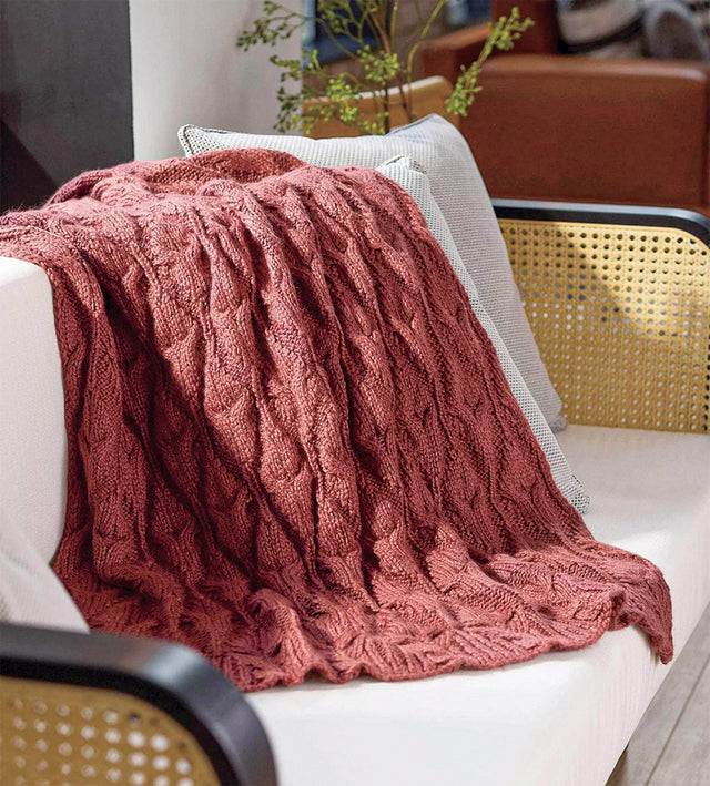 Indulge in nature's beauty and wrap yourself in pure luxury with our Secret Vineyard Blanket. Its delicate vine pattern adds a touch of elegance, while its lightweight, soft yarn provides unparalleled warmth and comfort. Experience the ultimate cozy experience, perfect for any season. Kit includes Premier Elle By Me Charlotte yarn and instructions. Requires 32" (80 cm) circular needle size 6.50 mm. Finished size: 42 x 48". Intermediate Knit.