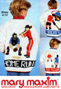 Create this Soccer cardigan using our graph-style, simple-to-follow pattern! Pattern will feature the soccer sports design on the back, with wording on the front band "SOCCER". Created with Mary Maxim Starlette worsted-weight yarn, which offered 220 yards per skein at the time. With a wide variety of worsted-weight yarns and top-quality brands like Mary Maxim Starlette to choose from, you can easily personalize it to match your team colours. Keep in mind yardages vary. Materials List: All Sizes MC White (5), Red ( 95 yds), Black (70 yds), Grey (35 yds), Blue (15 yds), Sand (15 yds), Yellow (5 yds). Also needed: Knitting Needles size U.S. 5 (3.75 mm), 8 (5 mm), and 29" (80 cm) circular size 5 (3.75 mm). The perfect cardigan for your #1 sports fan! Fits sizes 4,6, 8, 10, 12; Intermediate knit. Basketball, Hockey, and Baseball patterns sold separately.