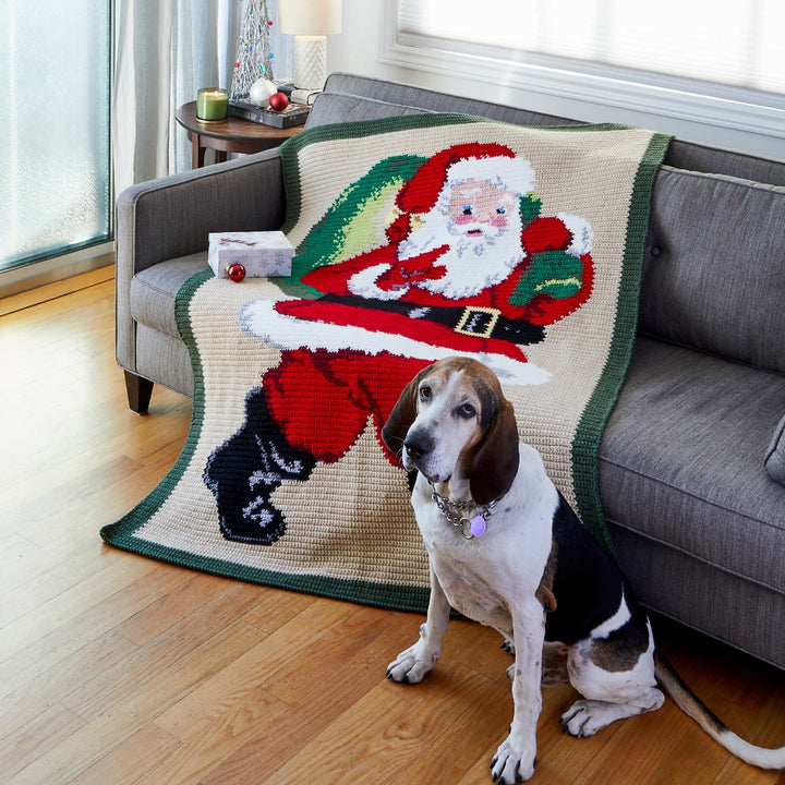This jolly retro soul will bring the finishing touch to your Christmas home decor. Kit includes Mary Maxim Starlette yarns and instructions. Requires crochet hook size 5.0 mm. Finished size: 47 x 59". Intermediate Crochet.